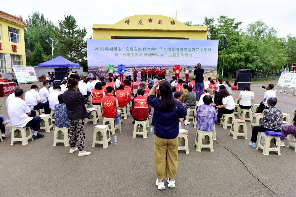6月26日上午,朔州市、朔城区两级新时代文明实践指导中心联合朔州市城市管理局及朔州市第七届全国文明单位,共同在朔城区张蔡庄乡峙庄村举办“文明实践,结对同行”全国文明单位助力文明实践暨“分类齐参与,低碳新时尚”主题宣传活动。