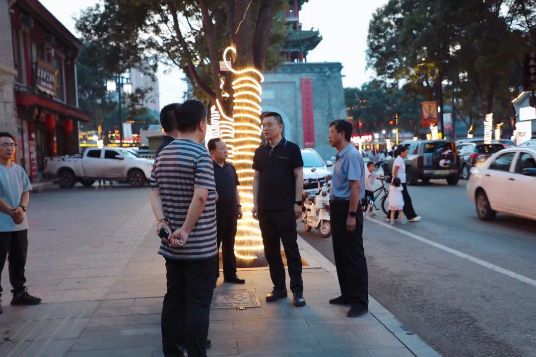 夜幕降临,朔州老城人群熙攘,烟火气十足。调研组沿街实地察看建筑立面、店铺招牌等街区市容环境情况,指出,朔州老城是展现朔城区城市品质的重要窗口。要结合老城现有特色,聚焦市容质态、经营业态、文化形态等重点,打造有颜值、有特色、有温度的街巷,让朔州老城迸发新的活力,让市民游客获得更舒适的体验感。